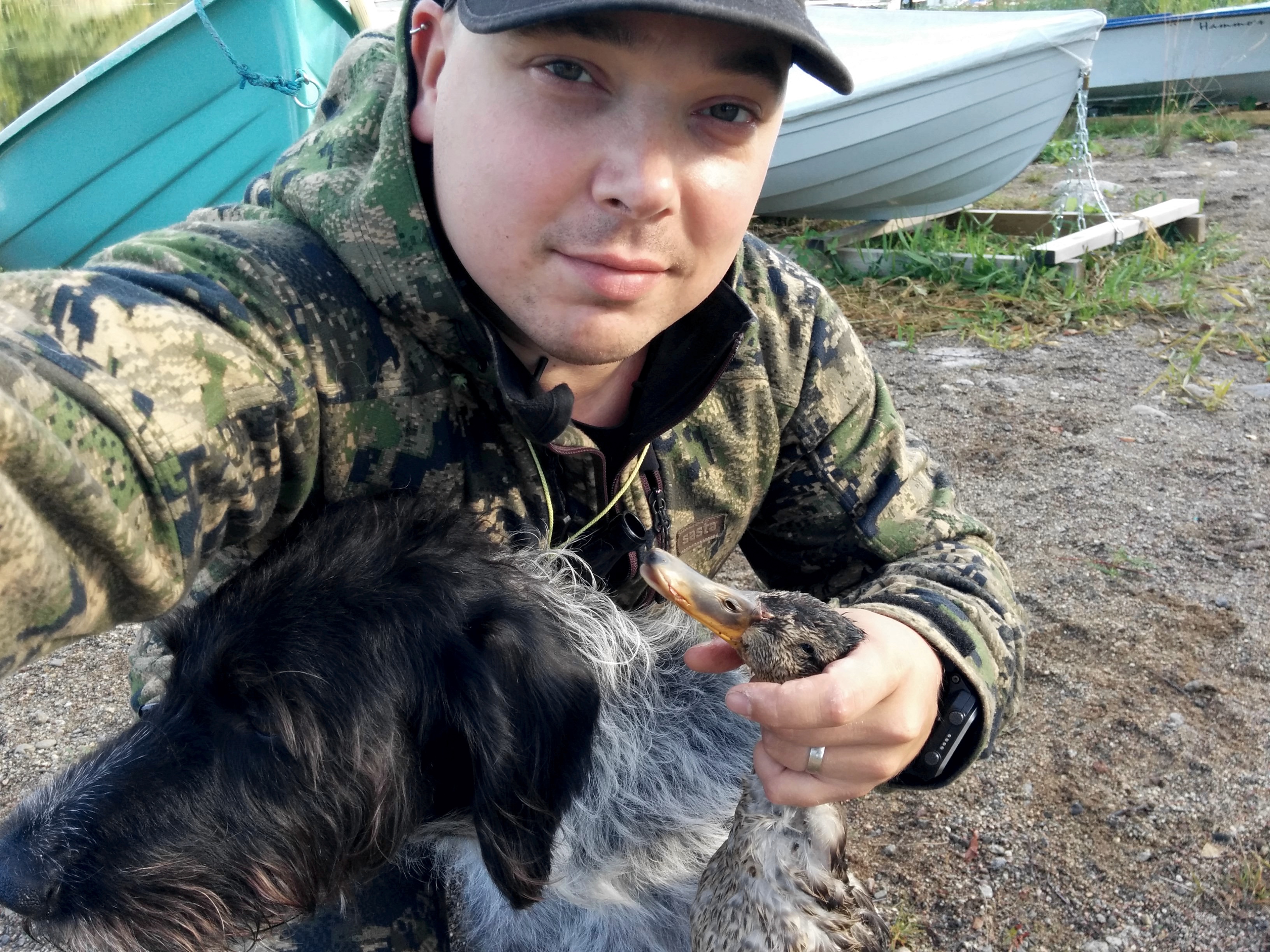 Saaliin saamisen lisäksi iloinen yllätys oli koiran riistaraivo, koska olen jo ehtinyt miettimään moneen otteeseen saako tuosta Tumpista tehtyä noutajaa. Elegantti veneestäpoistuminen juontaa juurensa siitä, että se oli koiralle ensimmäinen kerta ja varmaan osittainen vahinkokin ;)